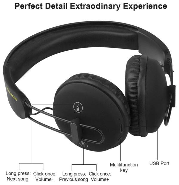 Εύχρηστα, επαναφορτιζόμενα ακουστικά κεφαλής που χρησιμοποιούνται ασύρματα με Bluetooth ή ενσύρματα με βύσμα AUX Jack.