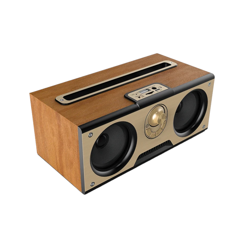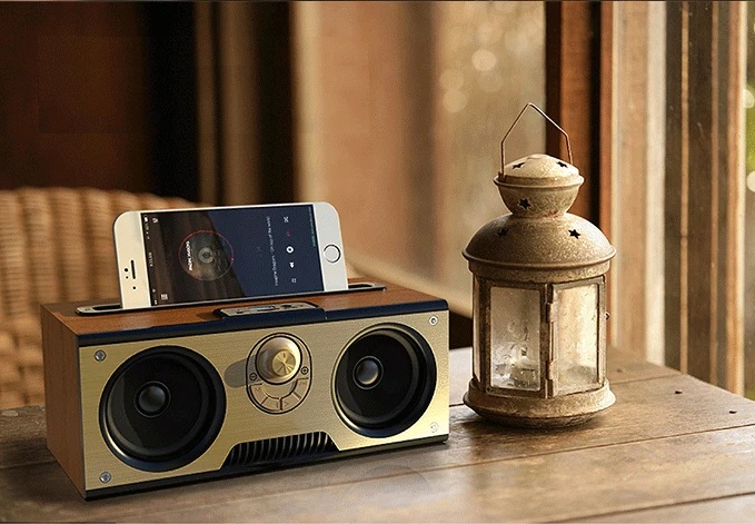 Ασύρματο ηχείο Bluetooth, επαναφορτιζόμενο, με εξαιρετικό ήχο και πανέμορφο retro σχεδιασμό για τους λάτρεις του Vintage. Διαθέτει ενσωματωμένα woofer υψηλής απόδοσης και πρακτική βάση τοποθέτησης του smartphone σας.