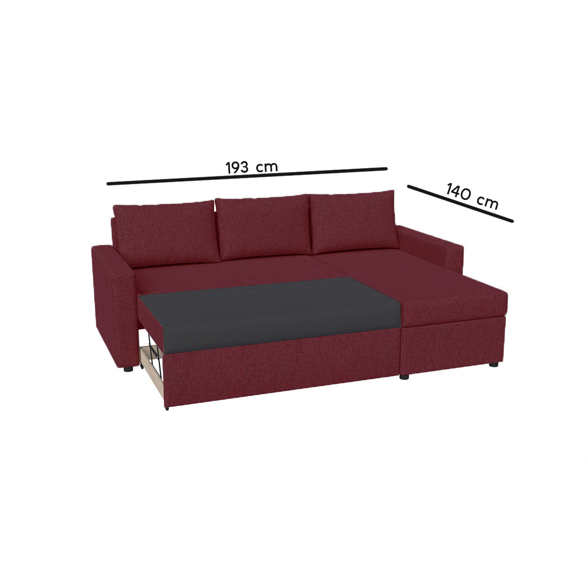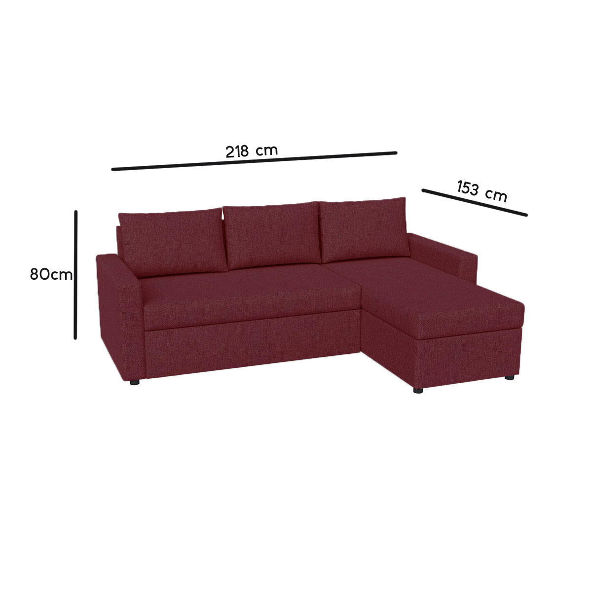 Concept Γωνιακός Καναπές Κρεβάτι με Αναστρέψιμη Γωνία & Αποθηκευτικό Χώρο Μπορντώ 218x153x80cm