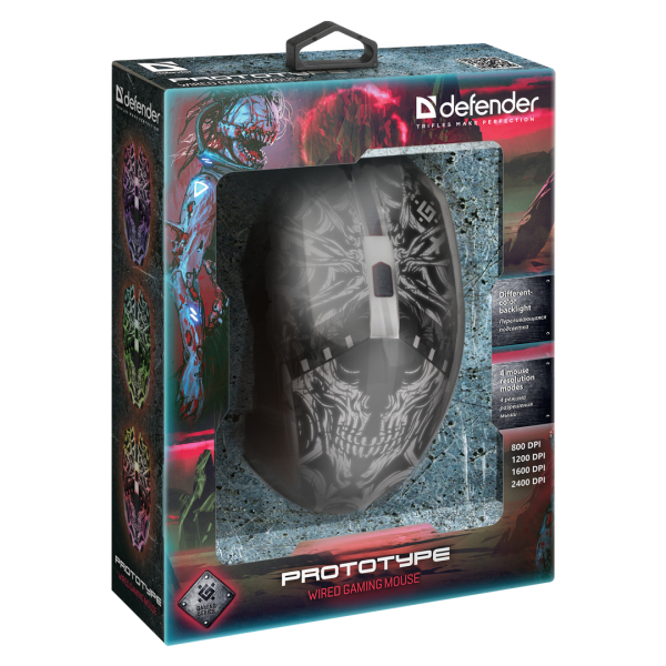 DEFENDER GM-670L PROTOTYPE GAMING WIRED OPTICAL MOUSE RGB 2400dpi