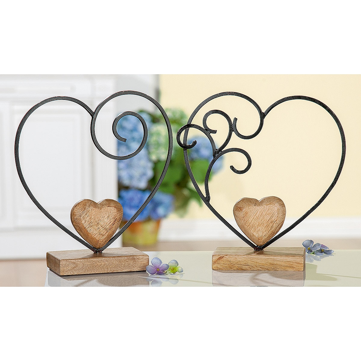 Διακοσμητικό καρδιά μαύρο/φυσικό μέταλλο/ξύλο 7.6x24x26.5cm σε 2 σχέδια.