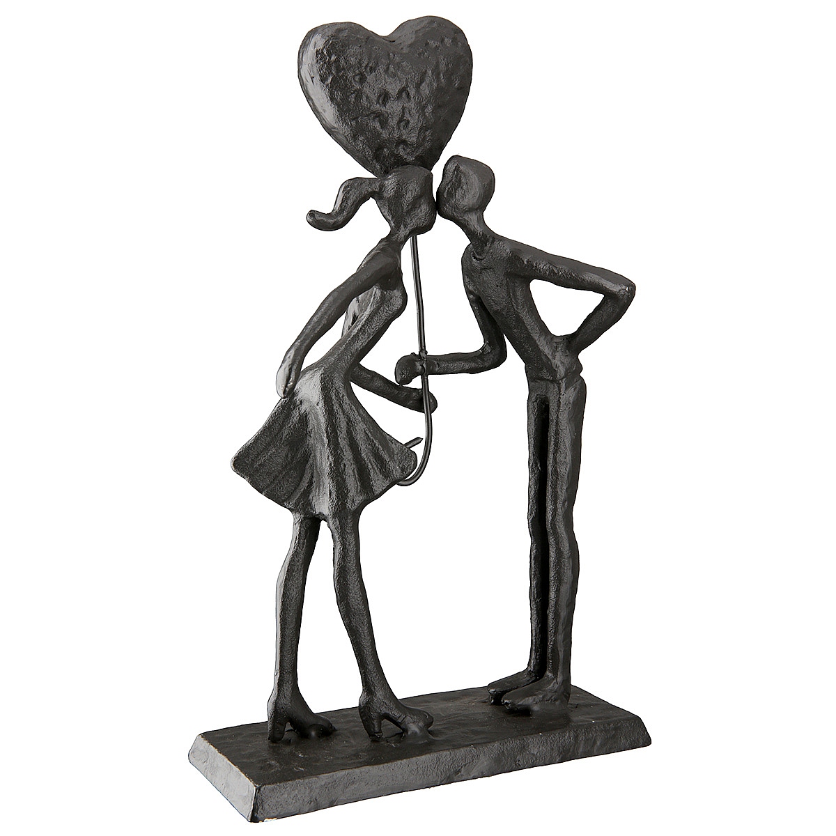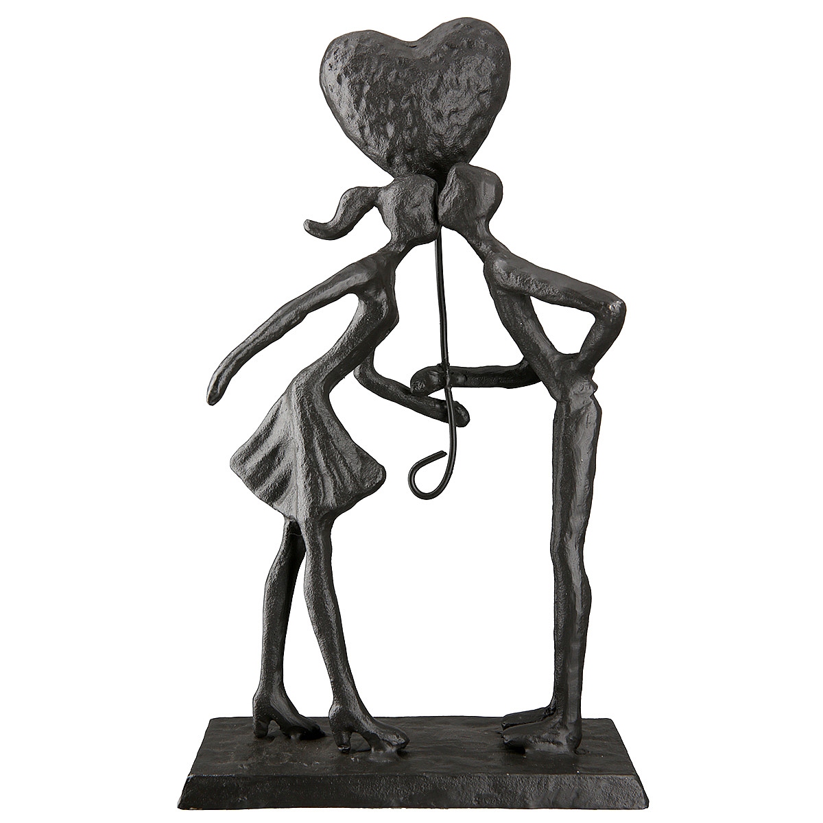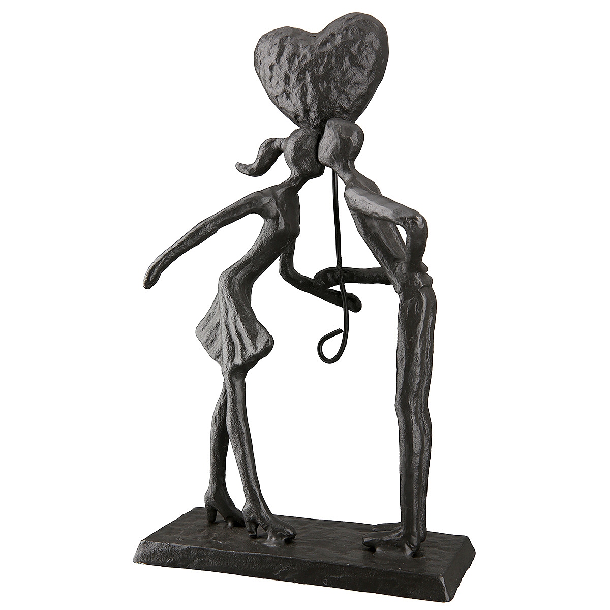 Διακοσμητικό ζευγάρι κρατάει καρδιά μπαλόνι καφέ μέταλλο 12.5x5x22.5cm.