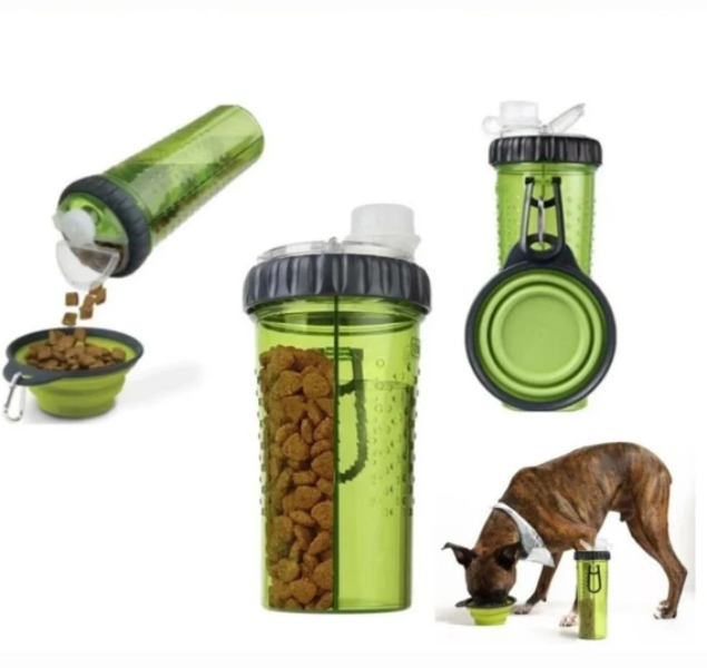 Μπουκάλι νερό σκύλου και δοχείο αποθήκευσης τροφίμων 2-σε-1.