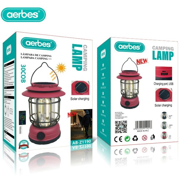 Επαναφορτιζόμενο ηλιακό φωτιστικό κάμπινγκ κόκκινο AB-Z1190 Aerbes