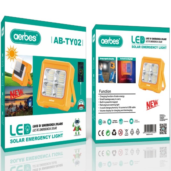 Επαναφορτιζόμενο ηλιακό φωτιστικό LED πορτοκαλί AB-TY02 Aerbes