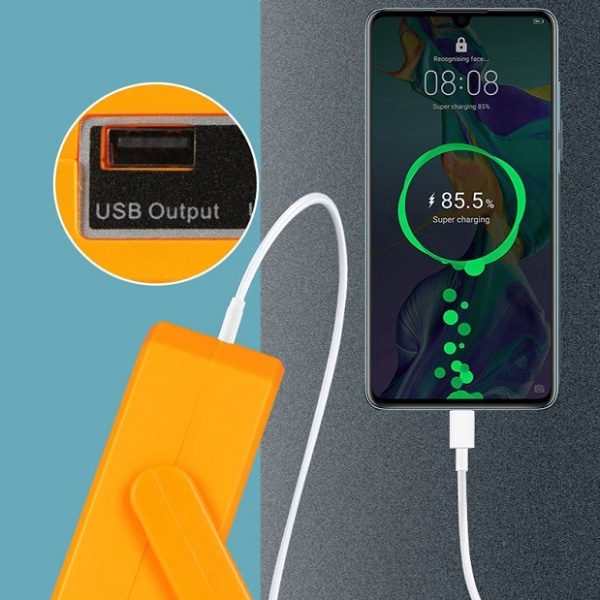 Μπορεί να χρησιμοποιηθεί και ως power bank για τη φόρτιση κινητών τηλεφώνων ή άλλων συσκευών σε περίπτωση ανάγκης.