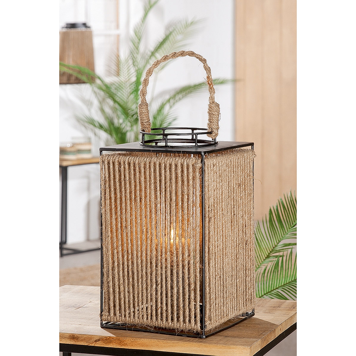 Φανάρι μαύρο/φυσικό μέταλλο/σχοινί 18x18x30cm.