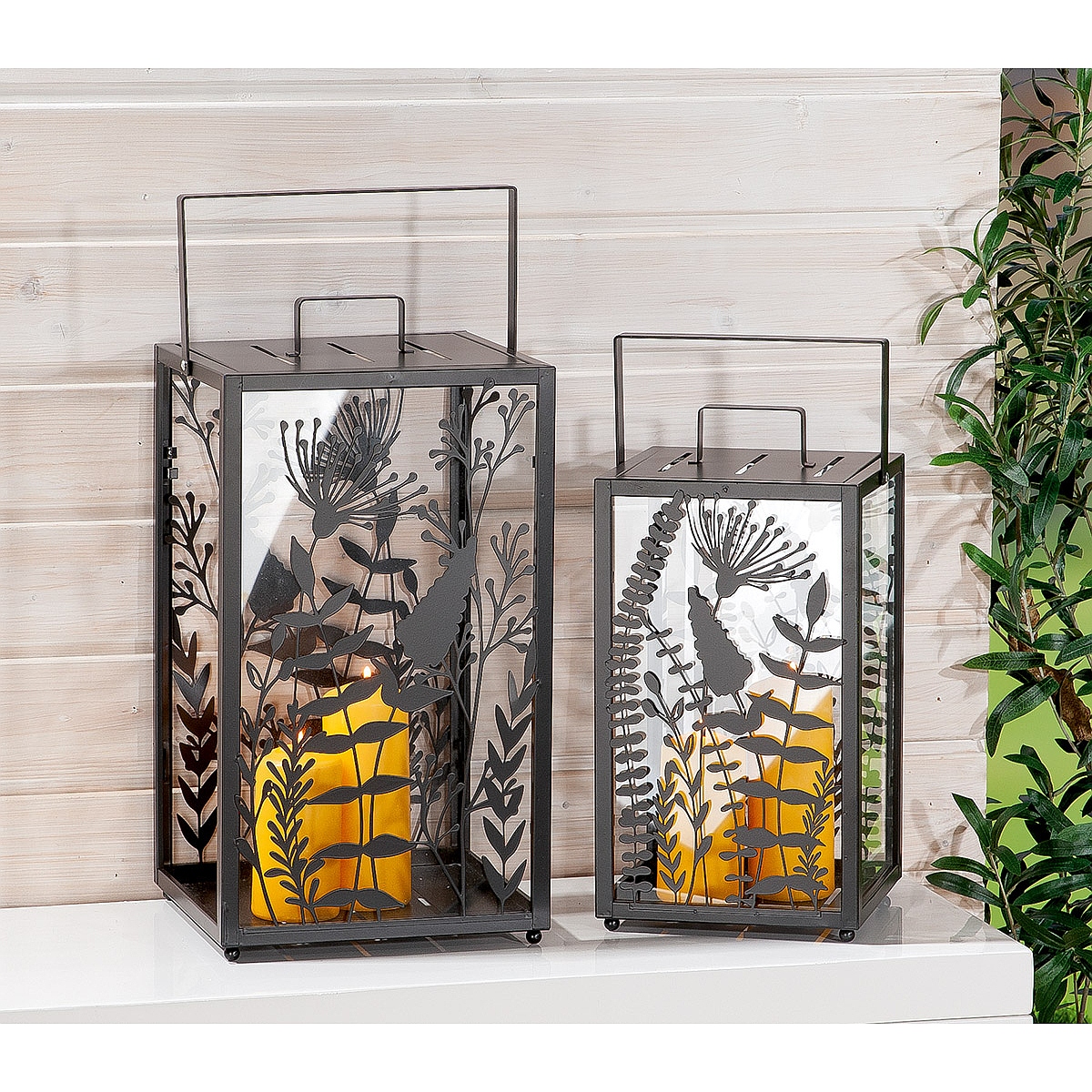 Φανάρι με διακόσμηση λουλούδια μαύρο μέταλλο/γυαλί 25x25x48cm.