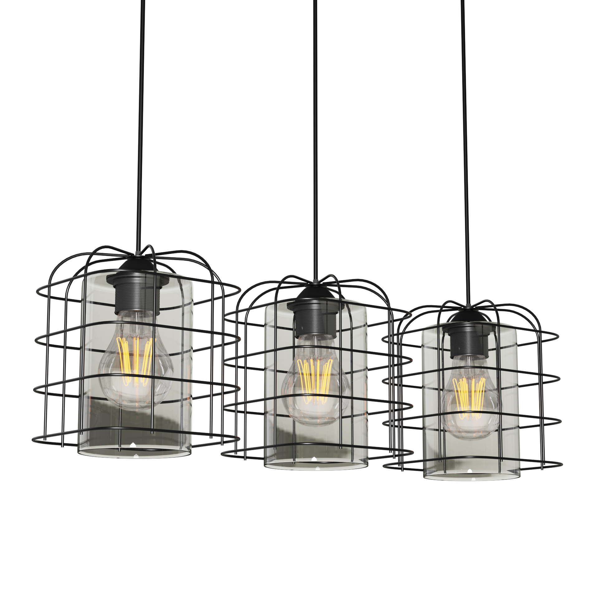 Φωτιστικό Κρεμαστό Τρίφωτο Μεταλλικό Μαύρο Ε27 50x15x65cm