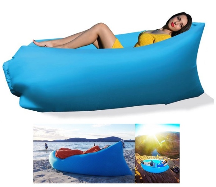 Φουσκωτός καναπές – ξαπλώστρα, κατασκευασμένος από ισχυρό και ανθεκτικό υλικό, που γεμίζει με αέρα σε μόλις λίγα δευτερόλεπτα.