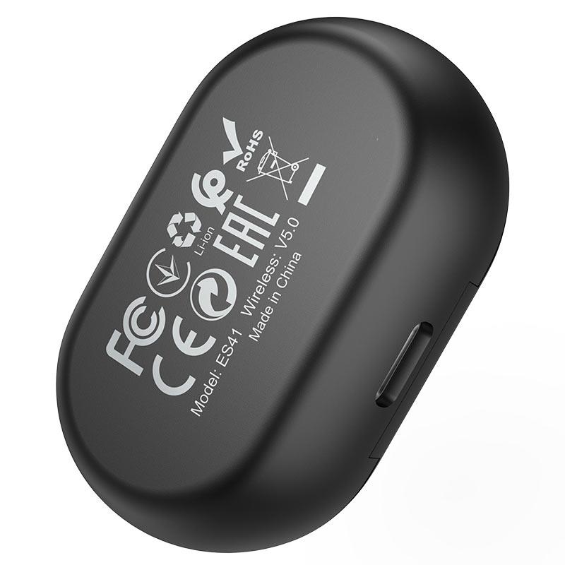 ES41 Clear sound TWS wireless headset with mic, BT V5.0, 40mAh headset battery for 5 hours of calls and music and 200 hours of standby, with 400mAh charging case1. BT version: 5.0, chip: JL6936D.2. Battery capacity: charging case 400mAh, single headset 40mAh.3. Calls / music time: 5 hours. Standby time 200 hours.4. Charging time: headset – 1 hour, charging case – 2.5 hours.5. Total weight: 37g. Single headset: 4g.6. Support “Leader” / “Follower” switching, graphene high fidelity moving coil unit, enjoy music!