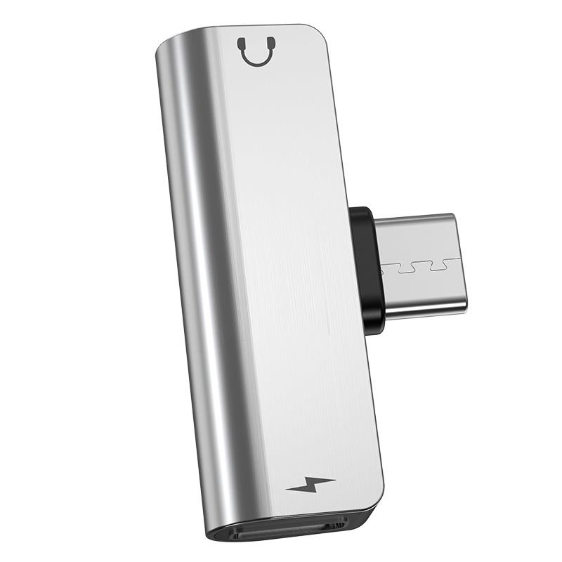 LS26 Type-C to 3.5mm 2-in-1 adapter charging current 1.5A audio converter with mic suppport1. Size: 40*22*10mm. Weight: 5g.2. Audio plug: 3.5 interface.3. Charging port: Type-C interface. Charging current: 1.5A.4. Microphone: supported.5. Wire control: supported.