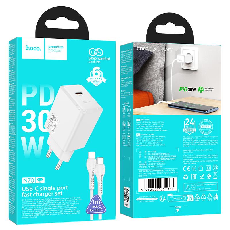 HOCO N70 NUEVO ΦΟΡΤΙΣΤΗΣ PD30W, 1 ΘΥΡΑ, TYPE-C, ΛΕΥΚΟ