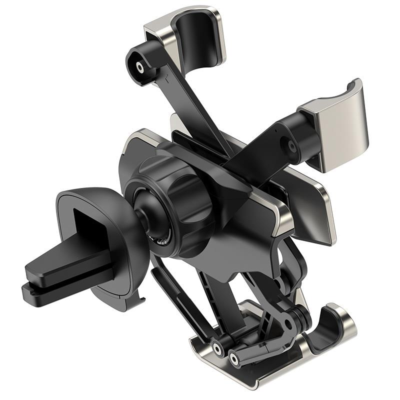 S25 Guide in-car phone holder gravity for car air outlet for 4-6.5 inch mobile phones1. Material: PC+ aluminum alloy + silicone.2. Surface technology: electroplating.3. Sizes: 97.6*106*37.5mm. Weight: 67g.4. Applicable to: 4-6.5 inch mobile phone.5. Applicable: air outlet.
