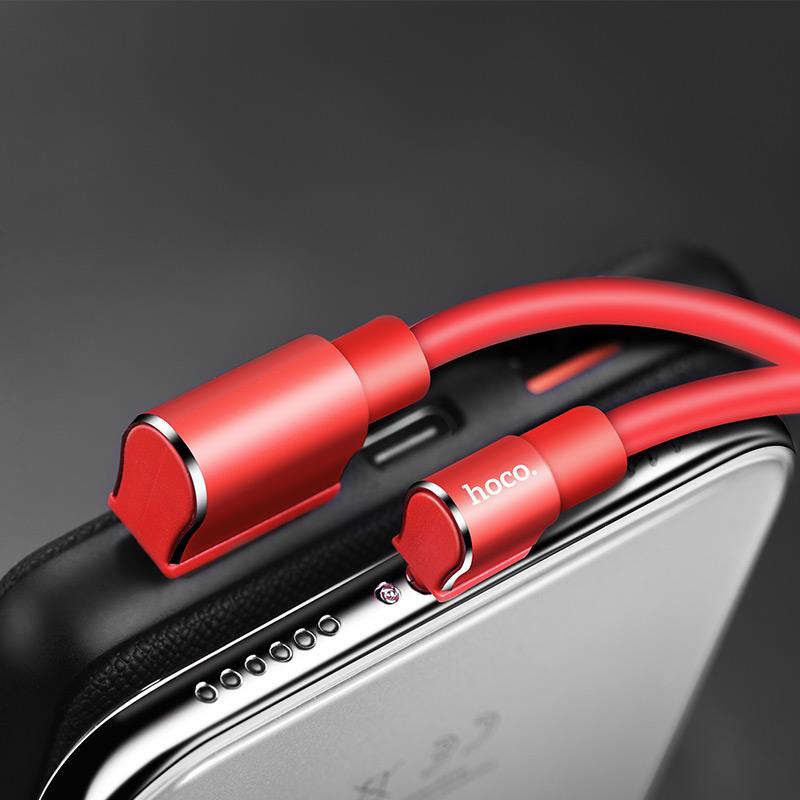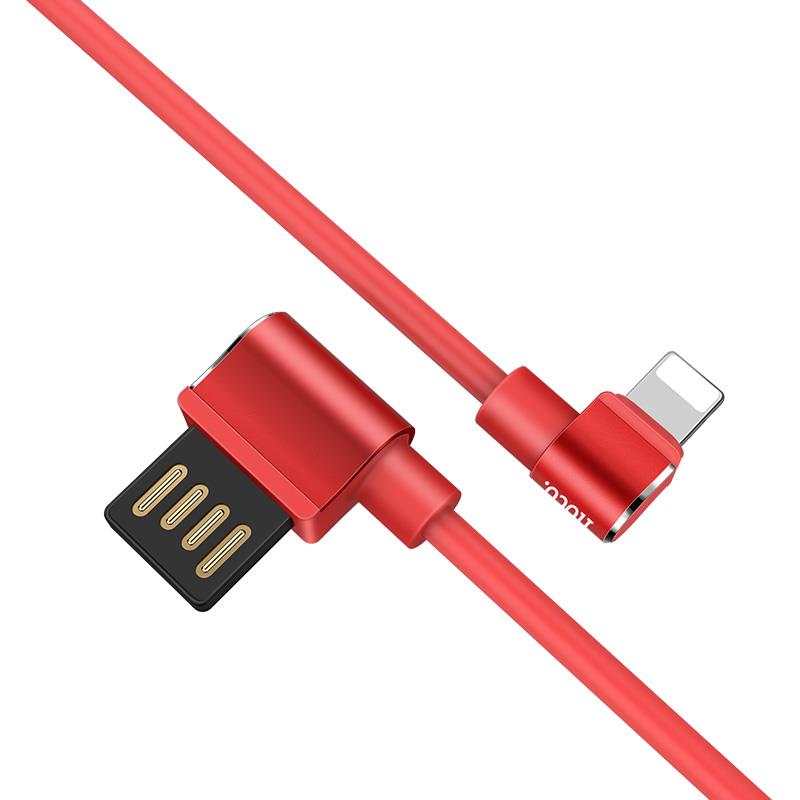 U37 Long roam 90° angled charging data cable for Apple Lightning interface devices, aluminum alloy connector, double sided USB joint, 1.2m1. Cable length: 1.2m, weight: 20g.2. Outer material: TPE.3. Joint material: aluminum alloy.4. Core: 128 tinned copper wire.5. USB-A port with double-sided plug design, easy to plug.6. Both ends are designed with 90° angle.