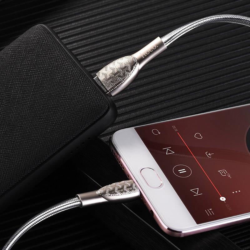 U52 Bright charging data cable 2.4A USB to Micro-USB 1.2m length zinc alloy joints transparent PVC braid1. Cable length is 1.2 m, weight is only 43g, so it is perfect for travel.2. Cable interface USB to Micro-USB, maximum current 2.4A, therefore you can charge your device very fast, cable support charging and data transfer.3. Color: Silver, golden, black.4. Material: zinc alloy, embossed surface texture, jelly-weaved (aluminum foil braided + transparent PVC braid), so the cable is thick, firm and reliable.5. Core: oxygen-free tinned copper, wire core : (43/0.08+250d nylon) *2C+ (16/0.08+250d nylon) *2C OD: 6.0*3.0mm.