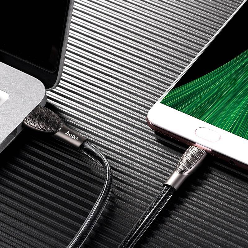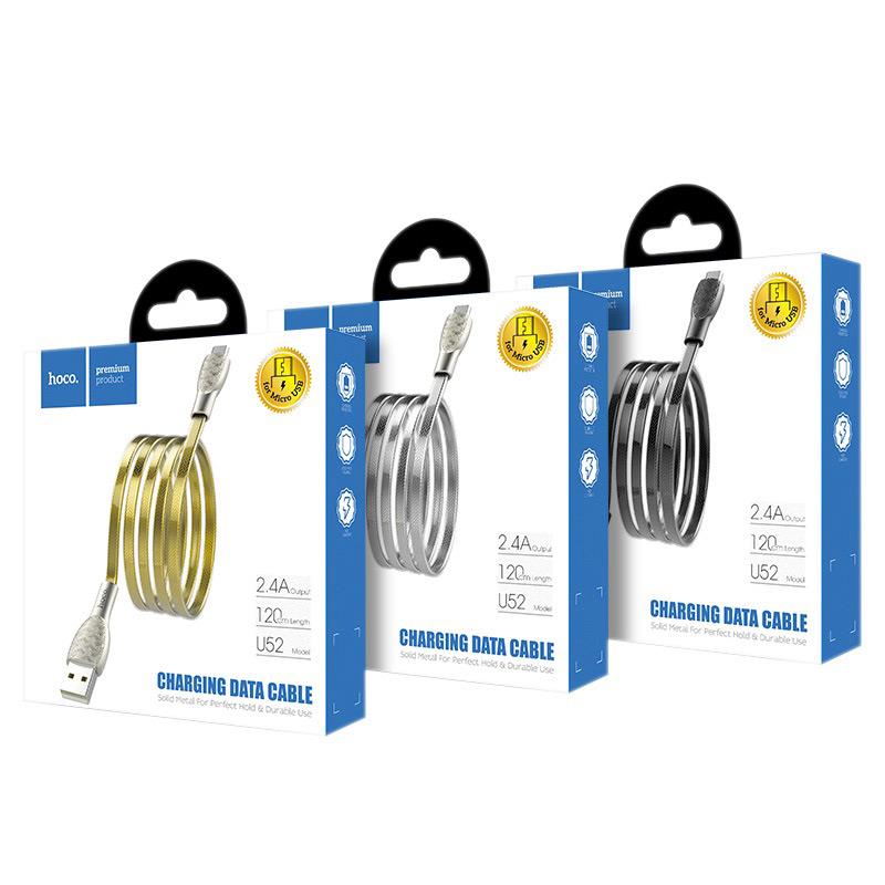 U52 Bright charging data cable 2.4A USB to Micro-USB 1.2m length zinc alloy joints transparent PVC braid1. Cable length is 1.2 m, weight is only 43g, so it is perfect for travel.2. Cable interface USB to Micro-USB, maximum current 2.4A, therefore you can charge your device very fast, cable support charging and data transfer.3. Color: Silver, golden, black.4. Material: zinc alloy, embossed surface texture, jelly-weaved (aluminum foil braided + transparent PVC braid), so the cable is thick, firm and reliable.5. Core: oxygen-free tinned copper, wire core : (43/0.08+250d nylon) *2C+ (16/0.08+250d nylon) *2C OD: 6.0*3.0mm.