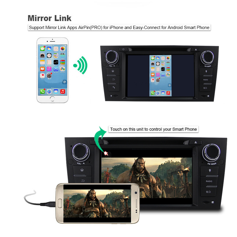 Διαθέτει: Λογισμικό Android Επεξεργαστή CPU: R16 Cortex A7 Quad Core RAM : DDR3 1GB ROM : EMM 16GB GPS, Bluetooth, Wifi, 3G, CD/DVD Σταθερή και εύκολη εγκατάσταση Plug and play Απευθείας σύνδεση με χειριστήρια, χωρίς αντάπτορες Σύστημα έξυπνης διαχείρισης μνήμης RAM Υποδοχές USB & SD & χειριστήριο Υποστηρίζει OBDII, σύνδεση με κάμερα οπισθοπορείας και δέκτη τηλεόρασης (δεν περιλαμβάνονται στο δέμα) Συμβατή με (μοντέλα 2005 και μετά): 3 Series E90 3 Series E91 3 Series E92 3 Series E93