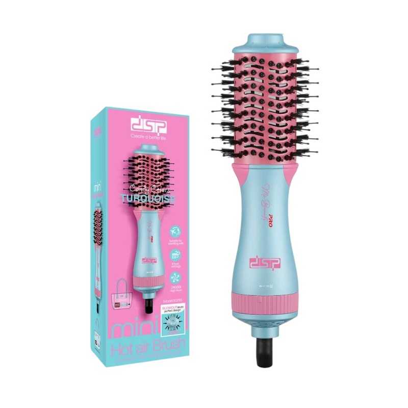 Ηλεκτρική βούρτσα μαλλιών της DSP, που στεγνώνει, χτενίζει και φορμάρει τα μαλλιά σας σε ελάχιστο χρόνο με τη δύναμη του αέρα, προστατεύοντάς τα παράλληλα από τη φθορά της θερμότητας, αφήνοντας ένα λείο, λαμπερό αποτέλεσμα.