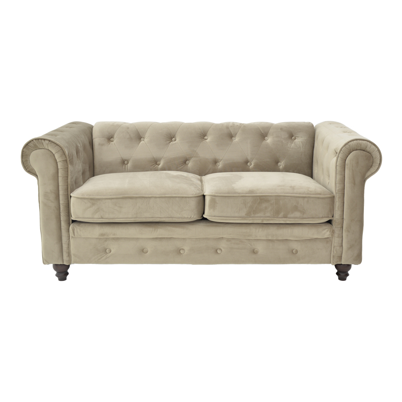 Kαναπές διθέσιος Incredible pakoworld τύπου Chesterfield βελούδο μπεζ 160x84x67εκ