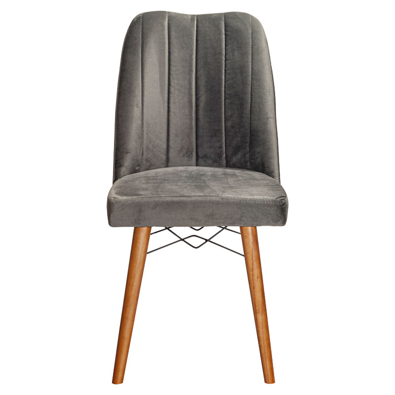 Καρέκλα Vespera I pakoworld βελούδο γκρι-καρυδί πόδι