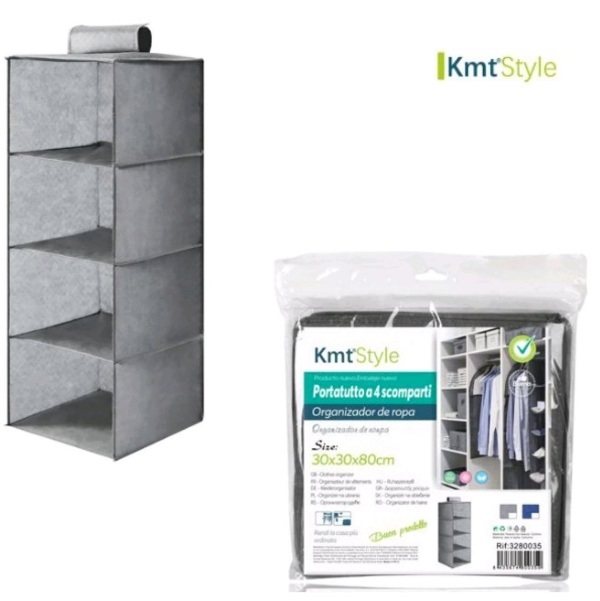 Κρεμαστή υφασμάτινη θήκη αποθήκευσης 4 ράφια γκρι 3280035 OEM