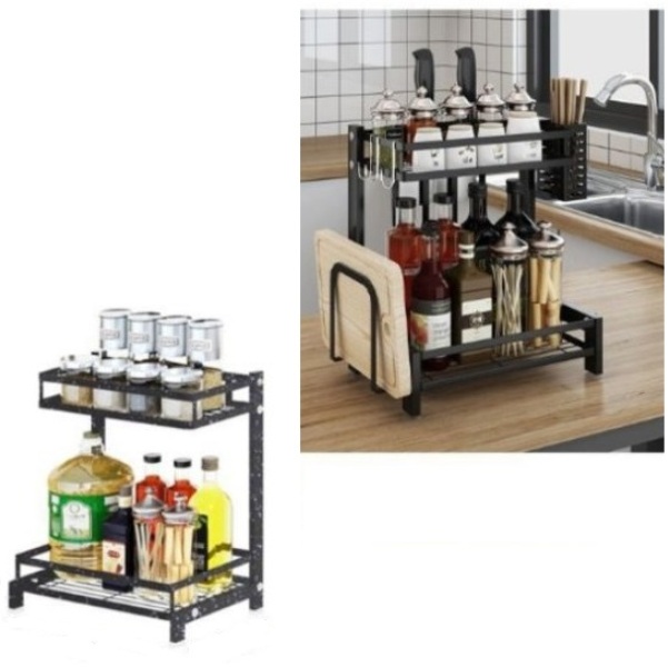 Μεταλλικό ράφι αποθήκευσης 2 επιπέδων πάγκου κουζίνας μαύρο 21807 OEM