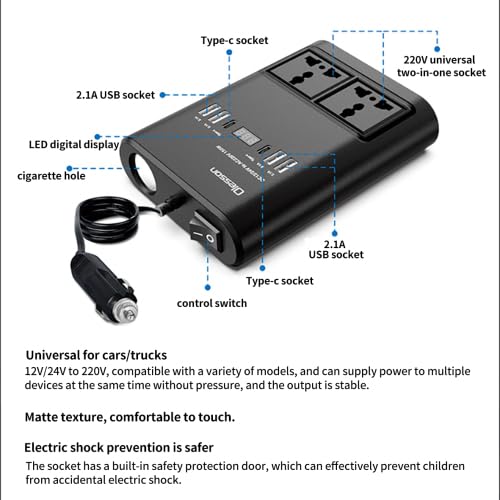 Inverter αυτοκινήτου με ισχύ 150W, ο οποίος μετατρέπει το συνεχές (DC) ρεύμα 12V της μπαταρίας του αυτοκινήτου ή του σκάφους σε εναλλασσόμενο (AC) ρεύμα 220V, δίνοντάς σας τη δυνατότητα να τροφοδοτήσετε όλες τις συσκευές που απαιτούν 220 Volt οπουδήποτε θελήσετε.