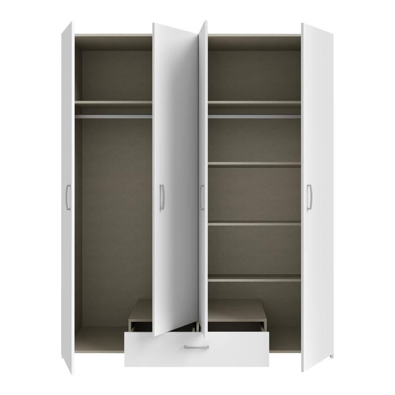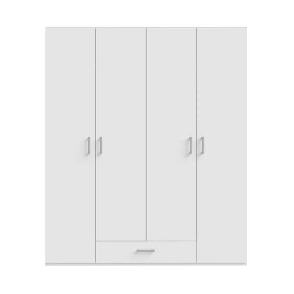 - Περιλαμβάνει τέσσερις μεγάλες πόρτες, εσωτερικά φέρει ράγες για κρεμάστρες και κάτω ένα συρτάρι για την αποθήκευση ρούχων και αξεσουάρ.
