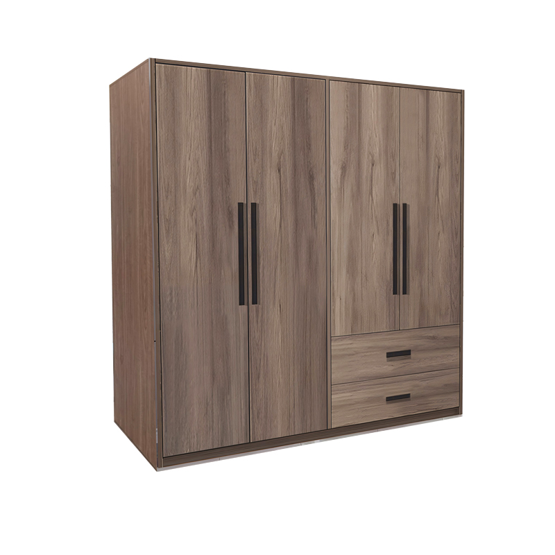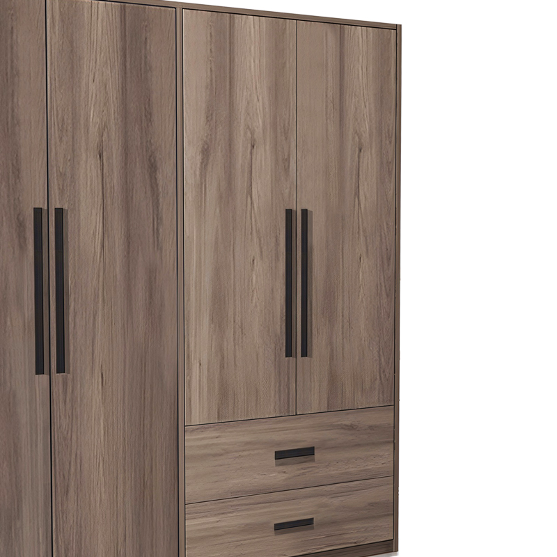 Ντουλάπα ρούχων Edritte pakoworld τετράφυλλη με συρτάρια ανοιχτό καρυδί μελαμίνη 160x52x195εκ