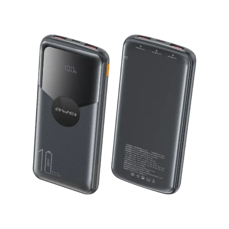 Powerbank Awei μεγάλης χωρητικότητας 10.000mah, με λειτουργία γρήγορης φόρτισης στα 22.5W, σε πρακτικό μέγεθος για εύκολη μεταφορά παντού.