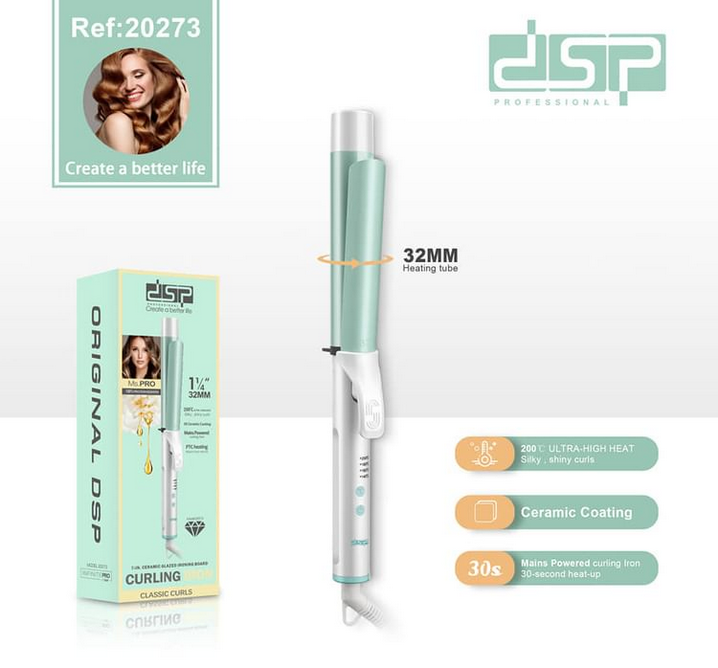 Ψαλίδι για μπούκλες της DSP με εργονομικό σχεδιασμό που αγκαλιάζει περιμετρικά το μαλλί και δημιουργεί τέλειες μπούκλες σε ελάχιστο χρόνο. Με τεχνολογία τουρμαλίνης και κεραμική επίστρωση για προστασία της τρίχας από την φθορά της θερμότητας.
