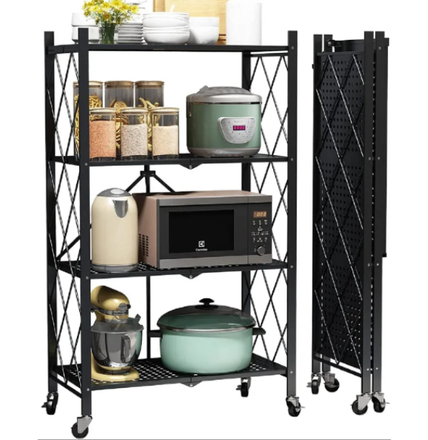 Πτυσσόμενη ραφιέρα δαπέδου 4 θέσεων σε μαύρο χρώμα.