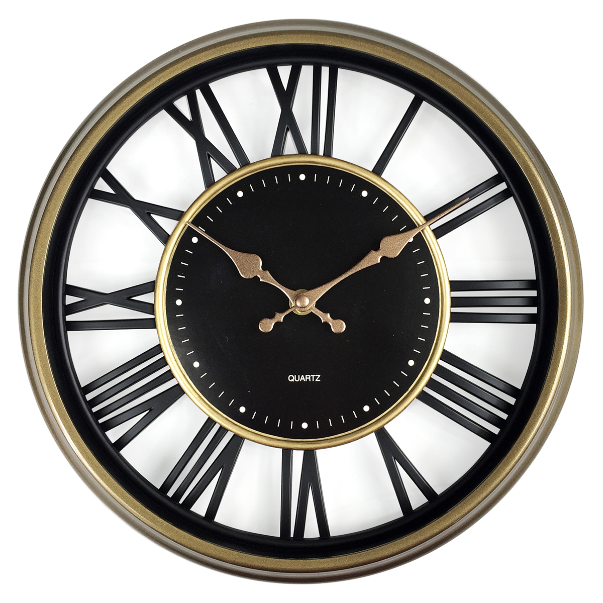 Ρολόι τοίχου στρογγυλό σε κλασικό διαχρονικό στυλ με μεγάλα λατινικά νούμερα.