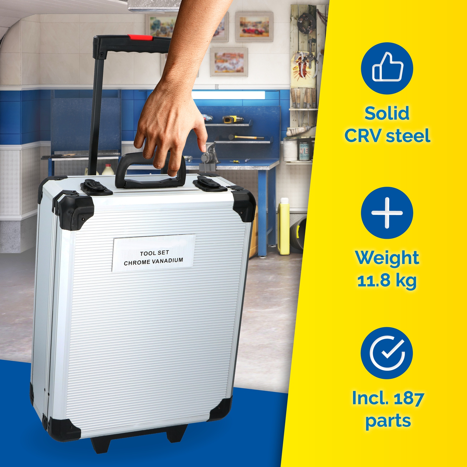 Το σετ εργαλείων της KINZO περιλαμβάνει 187 κομμάτια από υψηλής ποιότητας ατσάλι, ιδανικό για κάθε εργασία. Οργανωμένο σε πρακτική βαλίτσα, προσφέρει ευκολία στη μεταφορά και αποθήκευση.