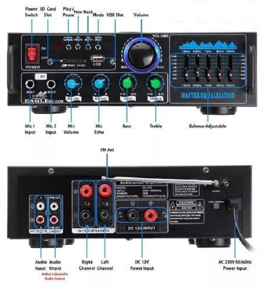 Θύρες: SD/USB/AUX/MIC,