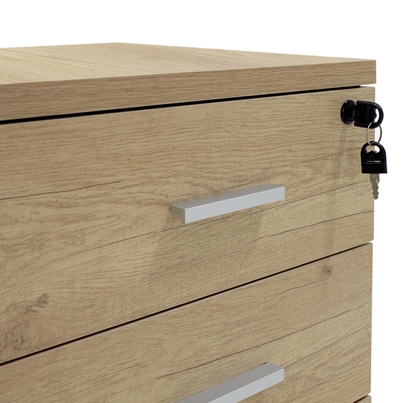 - Φέρει κλειδαριά που ασφαλίζει όλα τα συρτάρια καθώς και ρόδες για την εύκολη μετακίνηση και τοποθέτηση της στην θέση που σε βολεύει.