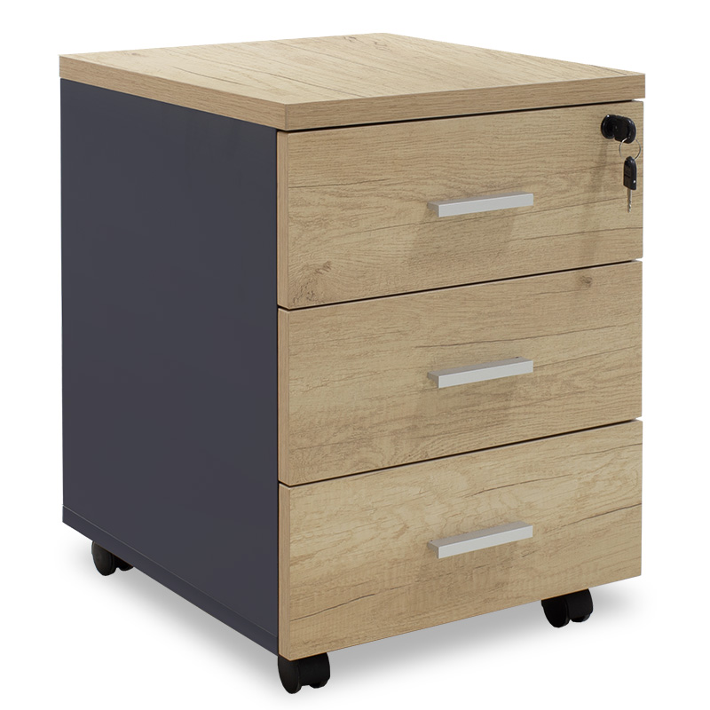 Τροχήλατη συρταριέρα Lotus στον εντυπωσιακό χρωματισμό του φυσικό με ανθρακί. Κατασκευασμένη από υλικά υψηλών προδιαγραφών και σύμφωνα με τις εργονομικές απαιτήσεις του σήμερα.
