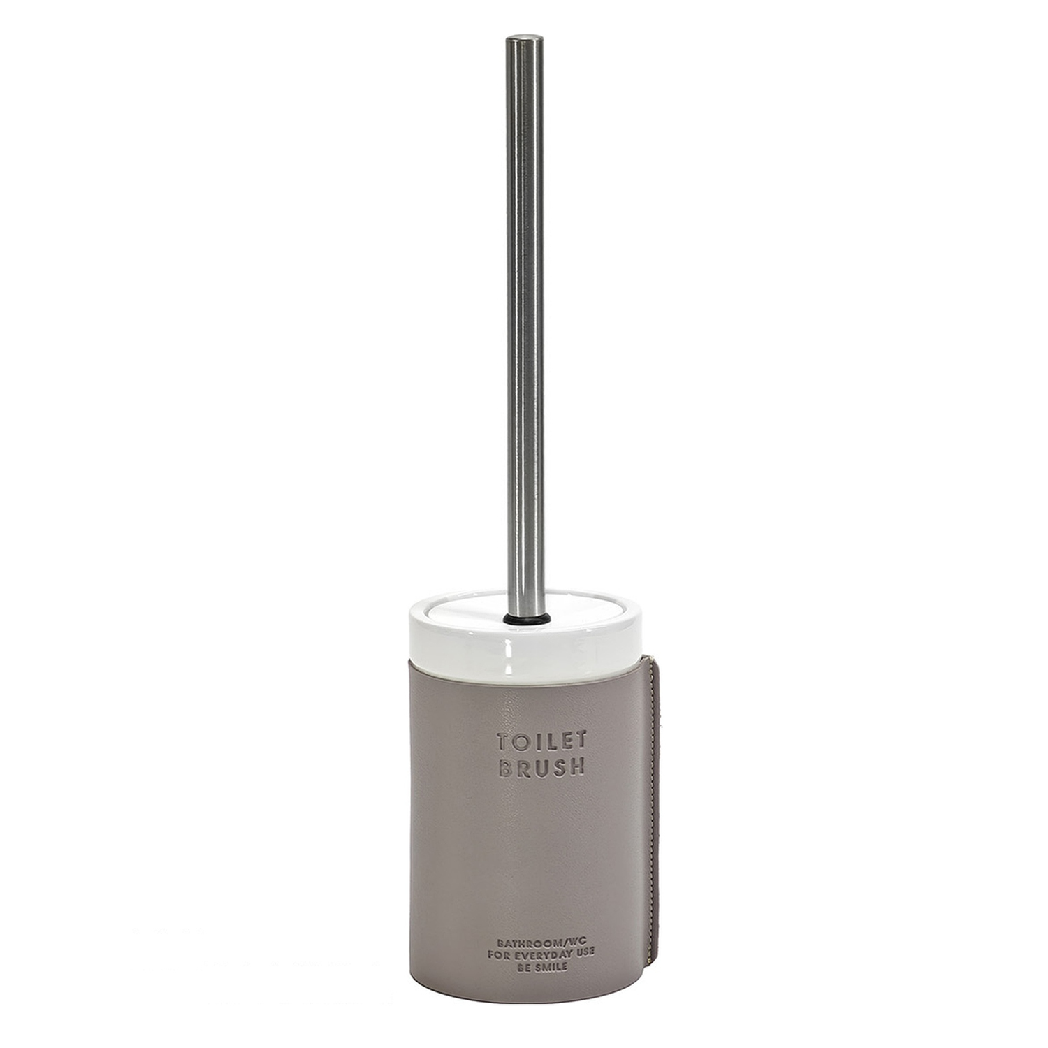 Μια κομψή θήκη για βούρτσα τουαλέτας σε γκρι και άσπρο χρώμα, κατασκευασμένη από κεραμικό υλικό, ιδανική για την καθημερινή χρήση στο μπάνιο σας.