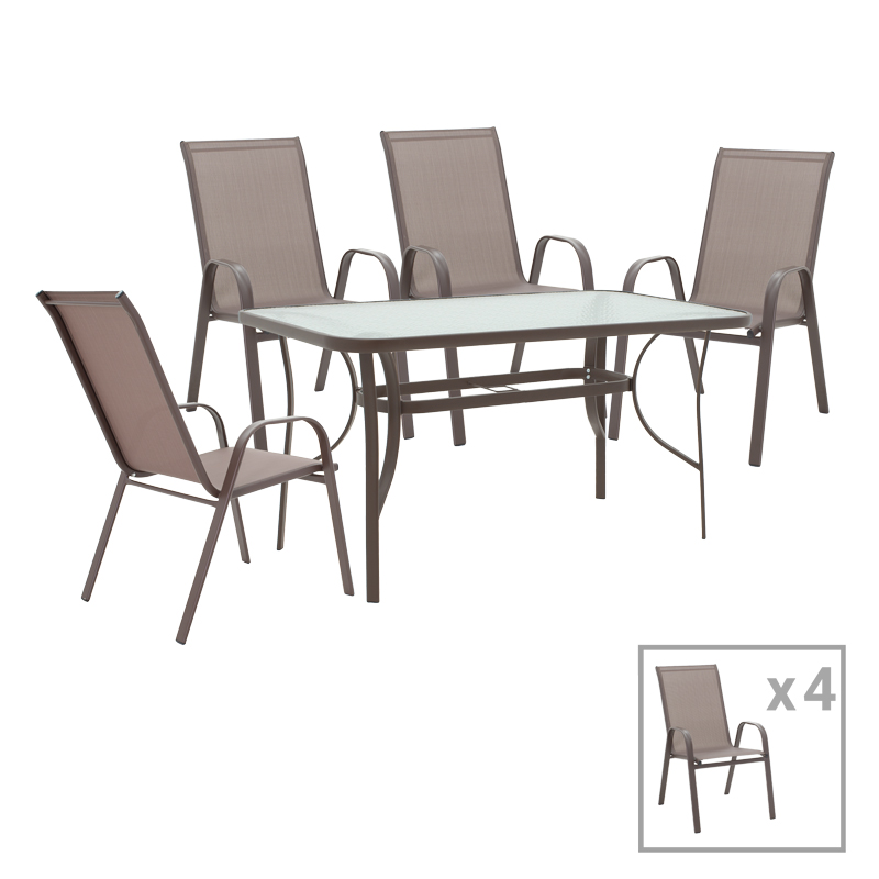 Tραπεζαρία Calan-Ensure pakoworld σετ 5τεμ σκούρο καφέ μέταλλο και γυαλί tempered 120x70x70εκ