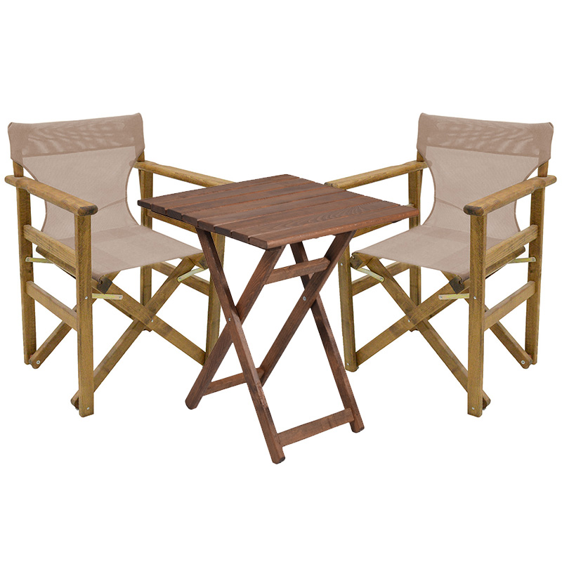 Tραπεζαρία κήπου Retto σετ 3τμχ μασίφ ξύλο οξιάς καρυδί-πανί taype 70x70x71εκ