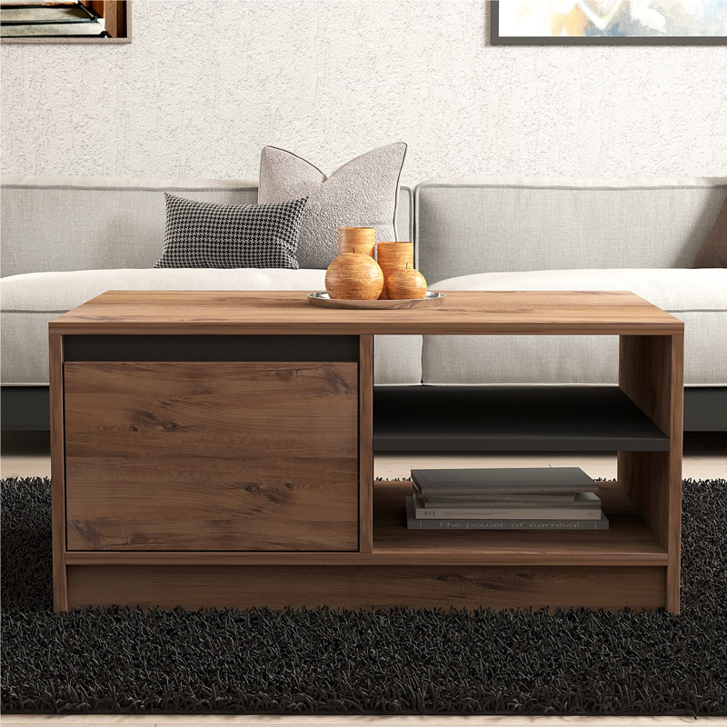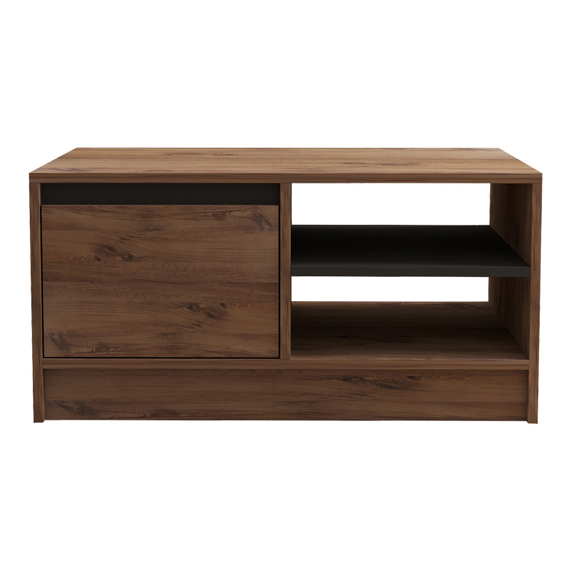 - Διαθέτει ένα ευρύχωρο ντουλάπι που κλείνει με ένα πρακτικό πορτάκι, καθώς και δύο ανοιχτές θέσεις στα πλαϊνά, προσφέροντας αρκετό χώρο για την αποθήκευση περιοδικών, βιβλίων, τηλεχειριστηρίων ή άλλων αντικειμένων, βοηθώντας σας να διατηρείτε το σαλόνι σας τακτοποιημένο.