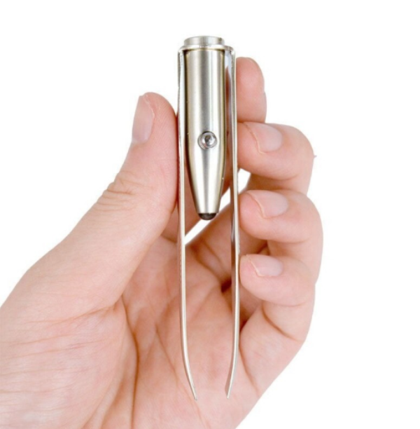 Ματ μεταλλικό τσιμπιδάκι ενσωματωμένο με φως LED, λοξή άκρη και σταθερό στήριγμα για τα δάχτυλα, ώστε με καθαρή θέα, εστίαση και έλεγχο να αφαιρείτε τυχόν ανεπιθύμητες τρίχες για να