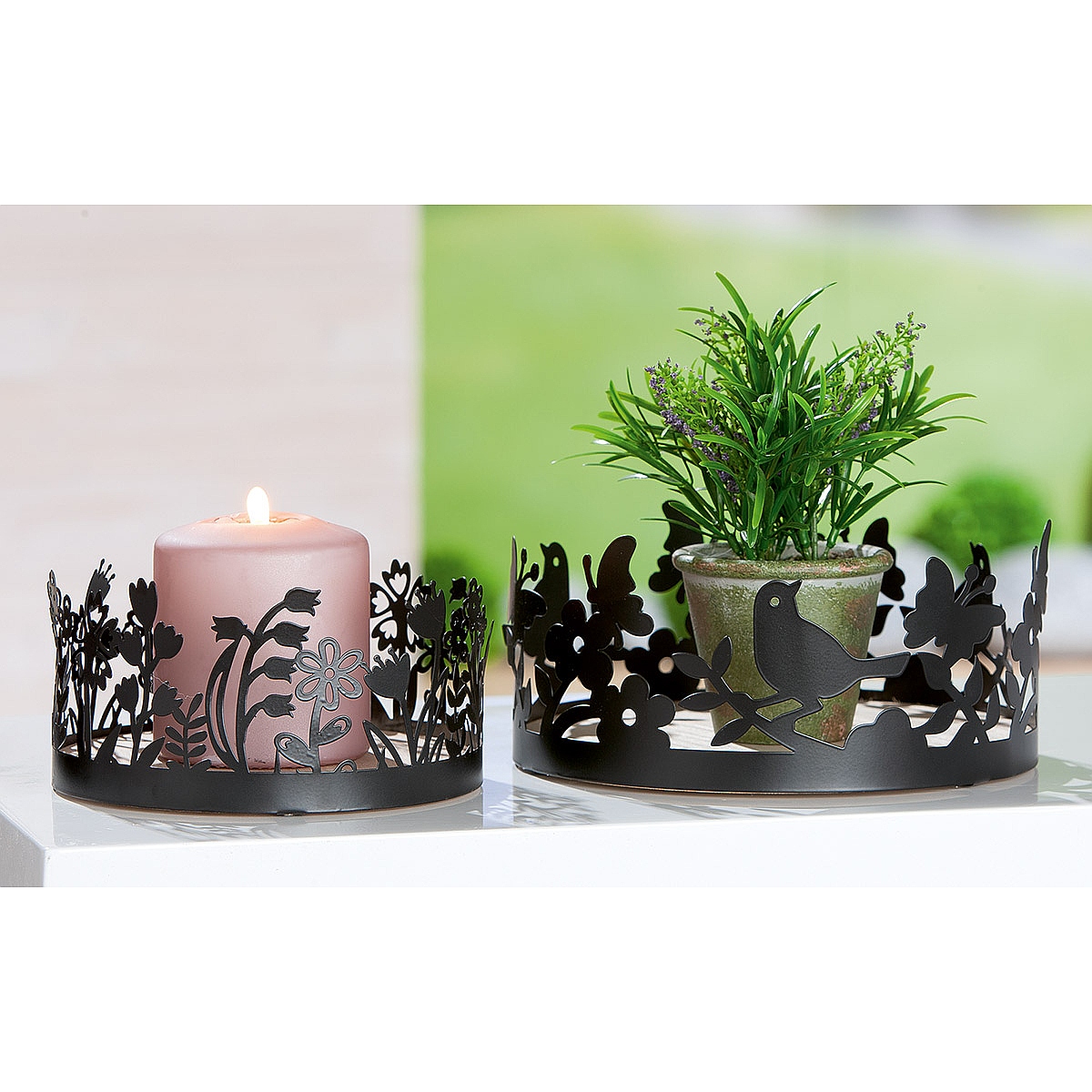Βάση γλάστρας με διακόσμηση μαύρο/φυσικό μέταλλο/ξύλο Φ20×9.5cm.