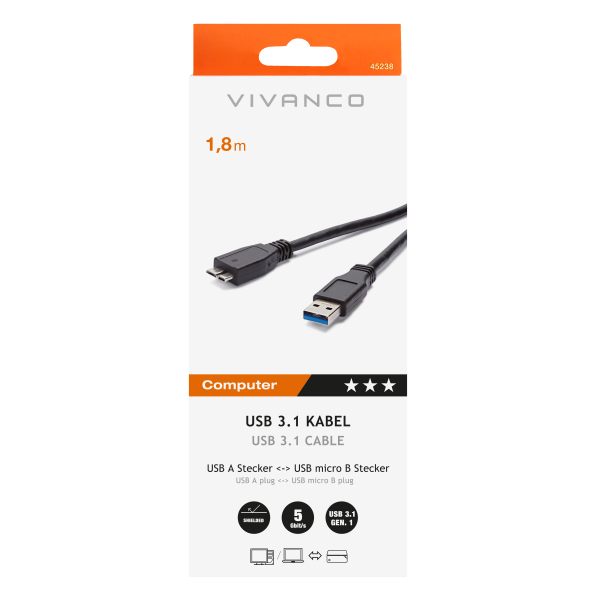 * USB 3.1 Gen.1 type A plug USB 3.1 Gen.1 type micro B plug