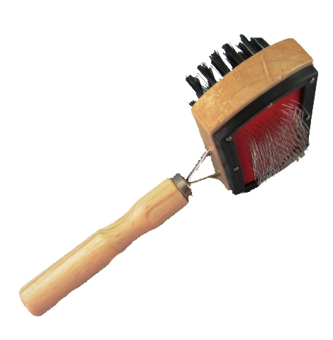 Ξύλινη βούρτσα κατοικιδίου διπλής όψης.Με σκληρή τρίχα απο τη μία πλευρά και μεταλλική απο την άλλη.