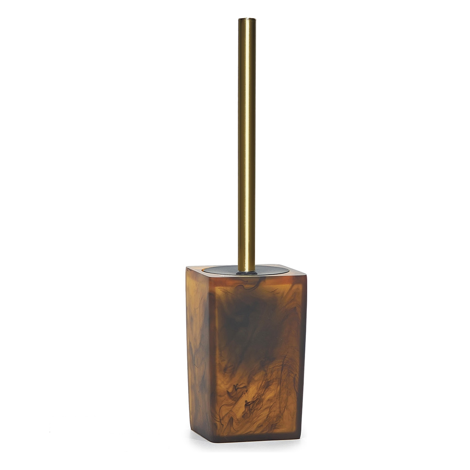 Εντυπωσιακό βουρτσάκι τουαλέτας σε καφέ απόχρωση, κατασκευασμένο από πολυρεζίνη. Το προϊόν προσφέρει στυλ και λειτουργικότητα στο μπάνιο σας.