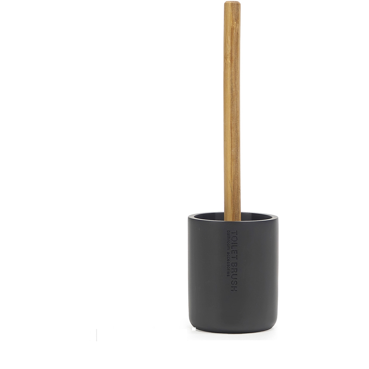 Κομψό βουρτσάκι τουαλέτας σε μαύρο χρώμα, κατασκευασμένο από πολυρεζίνη. Ιδανικό για μοντέρνους χώρους μπάνιου.
