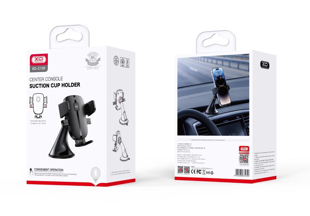 XO-C120 ■Material: ABS+ silicone■Surface technology: Sunburn■Size: 155*110*130(mm)■Weight: 91 grams ■ Chuck opening size: 55mm-88mm ■ Applicable scenes: car dashboard, windshield, desk