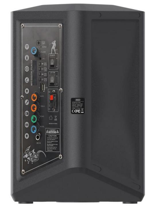 Μοντέλο: XO-F53Υβριδικό στερεοφωνικόΈκδοση Bluetooth: Bluetooth V5.0 Zhongke AB5362CΧωρητικότητα μπαταρίας: 18650 (3600mAh)/7,4V+Πλακέτα προστασίας μπαταρίαςΠρωτόκολλο υποστήριξης: A2DP 1.3 AVRCP 1.5Συχνότητα λειτουργίας Bluetooth: 2,402 GHz -2,480 GHzΙσχύς μετάδοσης: 8dBΠρότυπο φόρτισης εισόδου: 9V/1,5AΧρόνος φόρτισης: περίπου 4 ώρεςΧρόνος αναπαραγωγής: 4 ώρες (χρόνος αναπαραγωγής σε ένταση 70%, κουμπί έντασης γυρισμένο στο 23, προεπιλεγμένο φως αναμμένο) 4 ώρες 45 λεπτά (ένταση 70%, κουμπί έντασης γυρισμένο στο 23, φως σβηστό)Αποτελεσματική απόσταση: μεγαλύτερη από 10 μέτρα (ανεμπόδιστη όταν αντιμετωπίζετε εξοπλισμό)Ονομαστική ισχύς: 40WΜονάδα ηχείων: Ηχείο * 1 Μέγεθος: Διάμετρος 210mm (8 ίντσες) 4 Ω 40W. (3 ίντσες) 10WΛειτουργία: TWS, BT, FM, TF, USB, μικρόφωνο, εγγραφή, ενσωματωμένο EQ, αναπαραγωγή βρόχου, φωτισμόςΥλικό: ΠλαστικόΧρώμα: ΜαύροΜέγεθος: 251 * 281 * 354 mmΒάρος: 4,6 KgΑξεσουάρ: 1 ΤΕΜ αντάπτορας ευρωπαϊκών προδιαγραφών. 1 μικρόφωνο (χωρίς μπαταρία), 1 τηλεχειριστήριο (χωρίς μπαταρία), 1 καλώδιο AUX, 1 αντάπτορας (US standard)